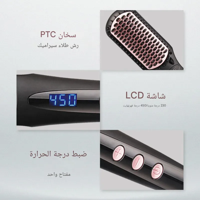 الساعة الإلكترونية: درجة الحرارة في شاشة LED لفرشاة تمليس الشعر من 140-446 درجة فهرنهايت. لتحويل من فهرنهايت إلى درجة مئوية : اضغط على "+" "-" في نفس الوقت.