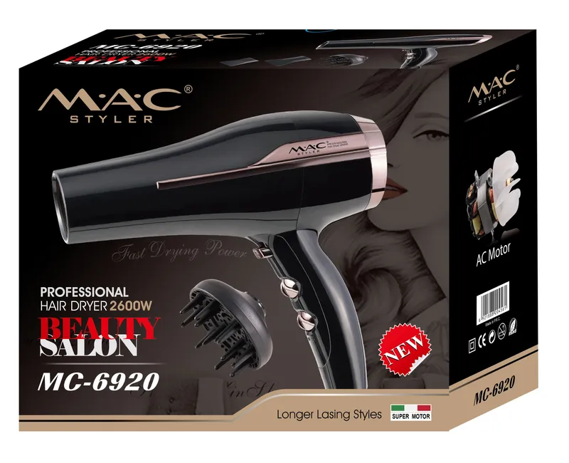 💨 محرك AC احترافي بقوة 2600 واط لأداء قوي وتجفيف سريع